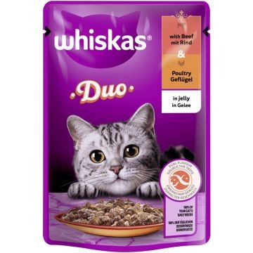 WHISKAS® DUO Portionsbeutel mit Rind & Geflügel in Gelee 85g